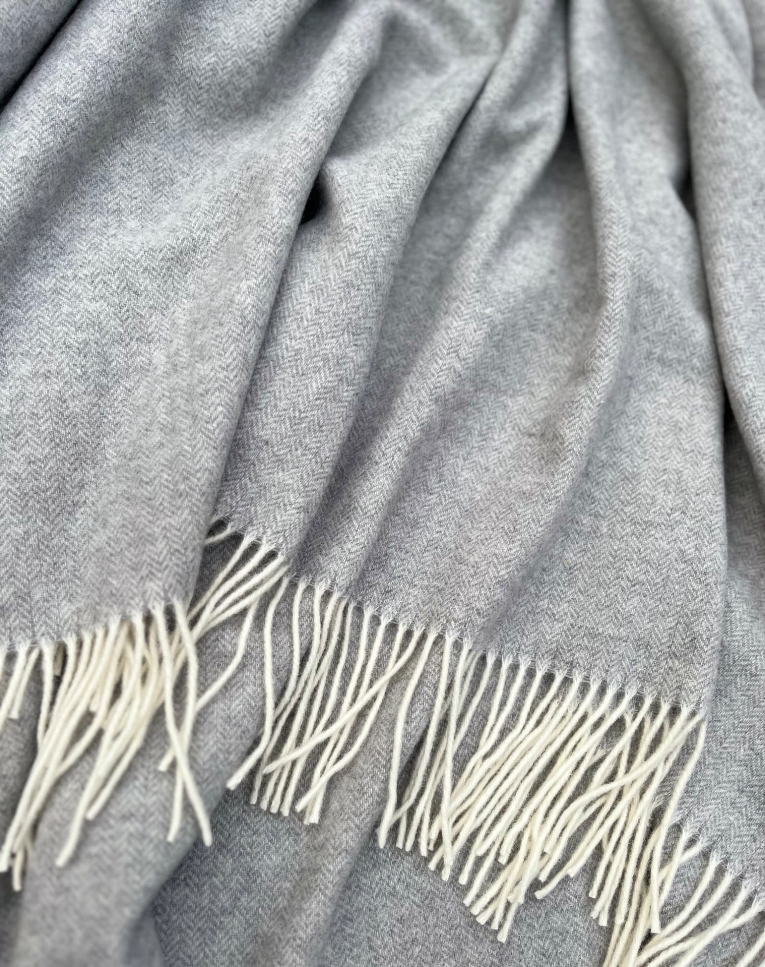 Light Chrome or Dove Grey Cashmere and Merino wool Throw